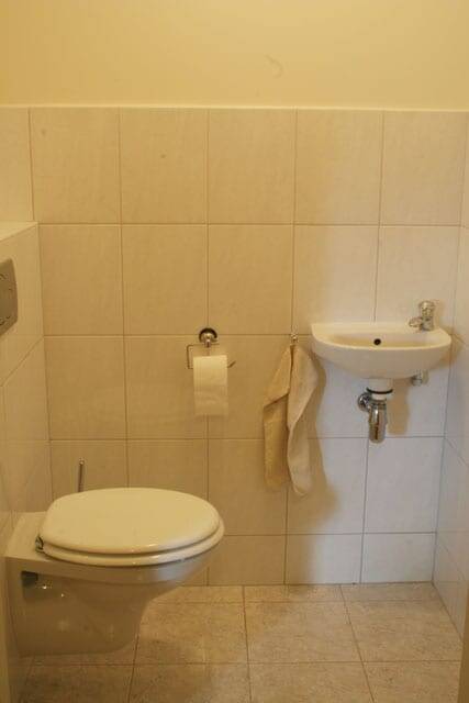 Außerdem verfügen die Badezimmer über ein Waschbecken mit Stauraum. Die Dusche ist mit einer Thermostat-Mischbatterie ausgestattet. Die Toiletten bieten allen Komfort.